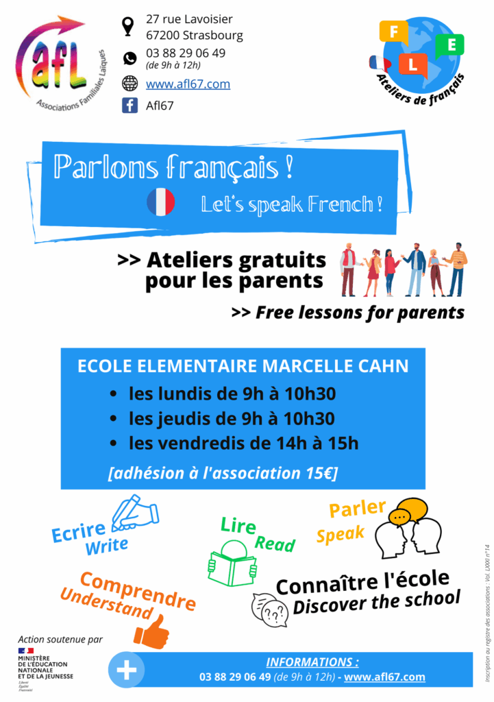 Cours de français pour les parents, à l’école